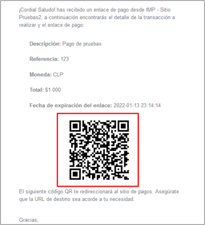 El usuario recibe un vínculo al cual acceder, y se presenta el código QR para que el usuario lo escanee desde su celular y también pueda realizar el pago