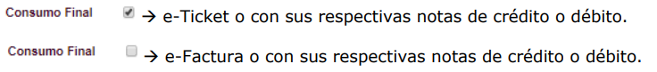 La opción “consumo final” determina el tipo de comprobante a realizar.