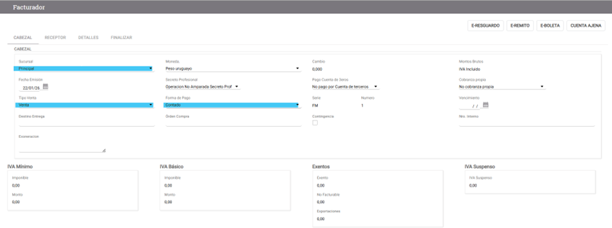 *Si se emite un comprobante e-ticket de más de 5000UI solicitará que se seleccione “Consumidor final” y se ingresen datos de un receptor, en vez de RUT poner cédula.