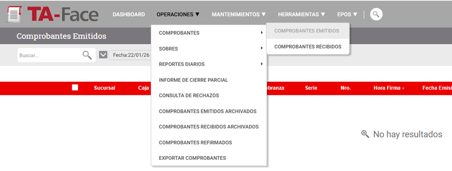 Dirigirse a Operaciones > Comprobantes > Comprobantes Emitidos