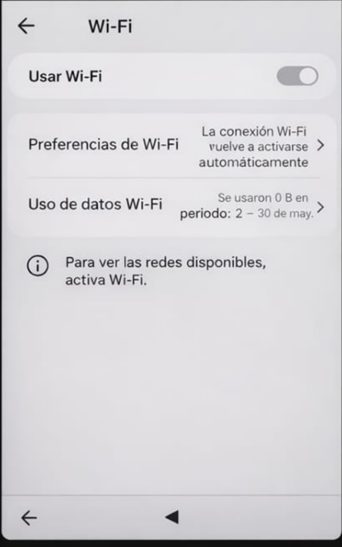 5. Una vez que entramos a este menú, vamos a configurar el WiFi como lo hacemos normalmente: Lo activamos, seleccionamos la red, ingresamos la contraseña y guardamos: